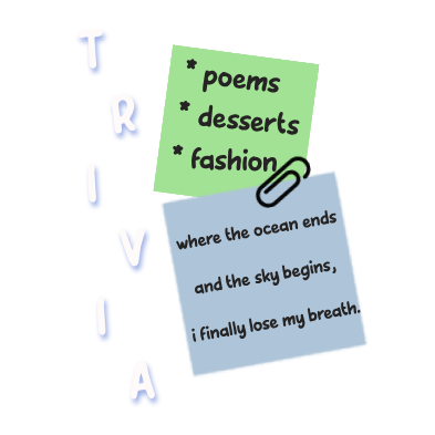 deep vibrations of sounds, pen, summer, mystery, pier, candles, citrus, linen, accessories, new pages, moonlight, natural vanilla, leather notebook, bitter black coffee, watching the sea, minimalist aesthetics, fashion trends, cooking alone.